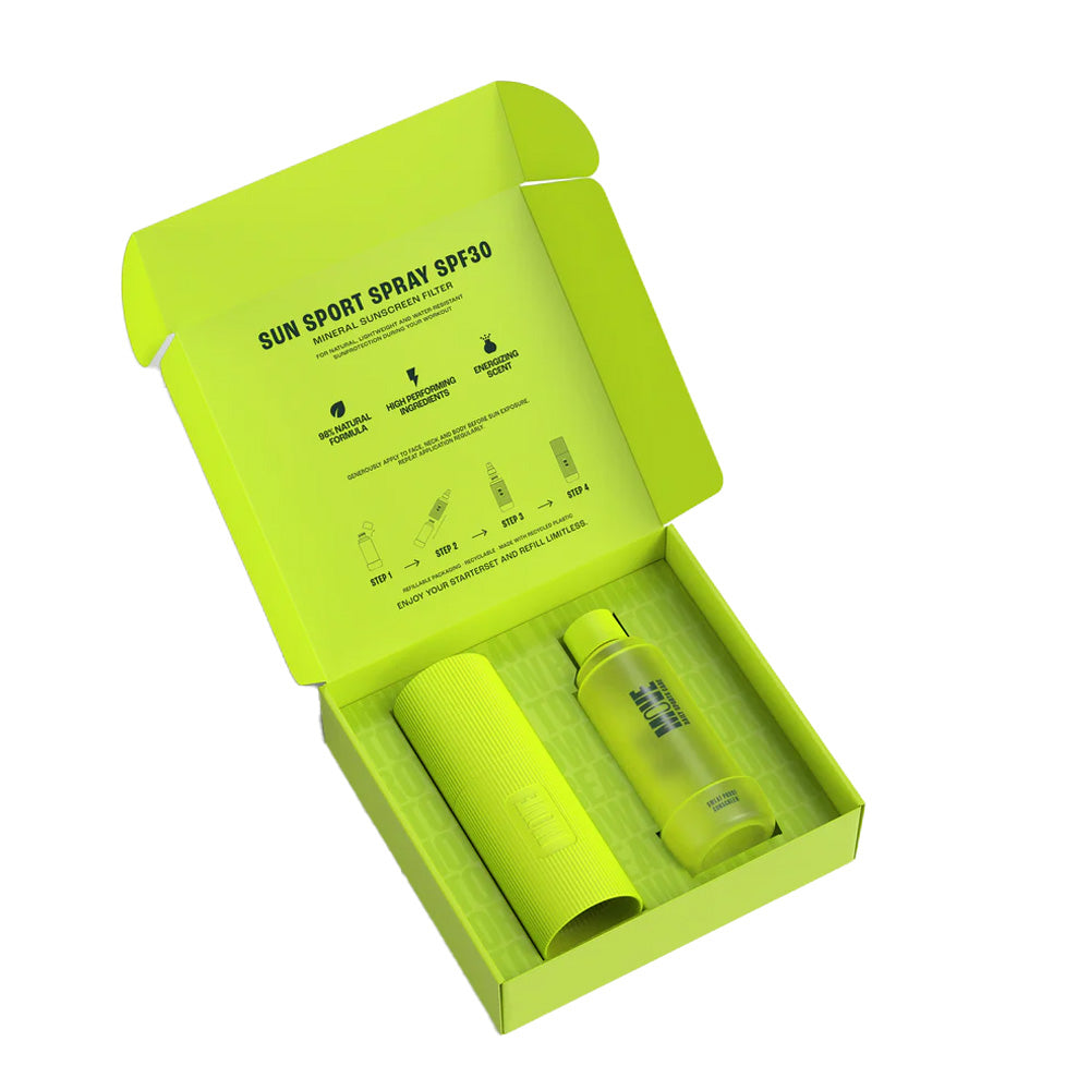 Solspray: Perfekt til hurtig påføring, solspray er nem at påføre og ideel til de svært tilgængelige steder. Sprayformen sikrer en jævn dækning og er vandafvisende, perfekt til aktive dage udendørs.
