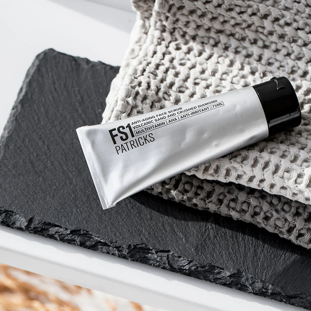 Anti-aging ansigts scrub fra Patrick's er en kraftfuld scrub med en dobbelt virkning. Det fugter huden dybt og stimulerer cellefornyelse. Vulkanisk sand og pulveriseret diamant kombineret med AHA hjælper med at fjerne døde hudceller og rense porerne dybt.